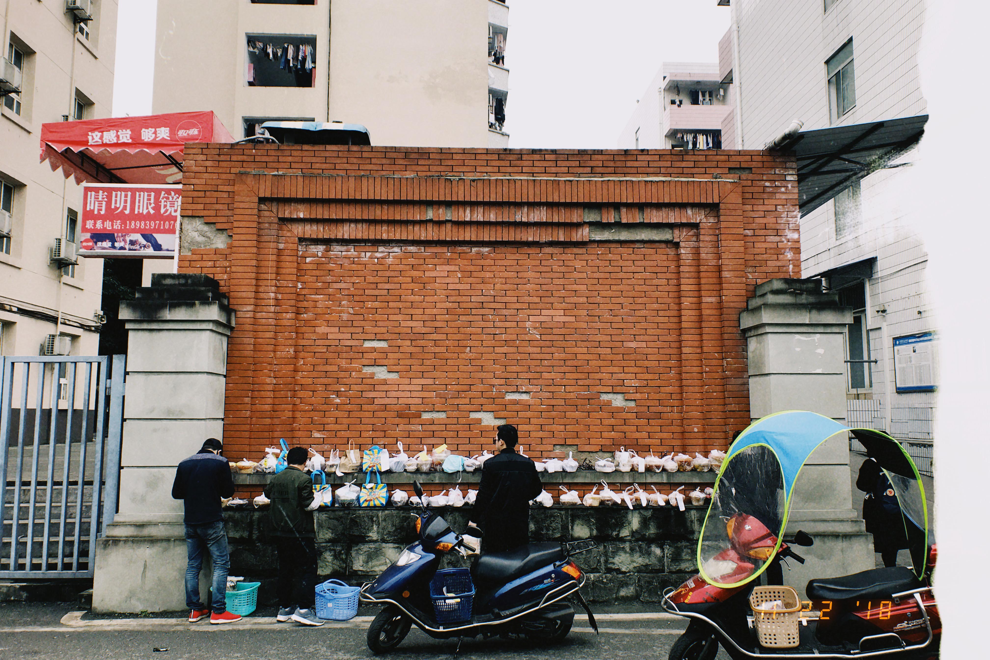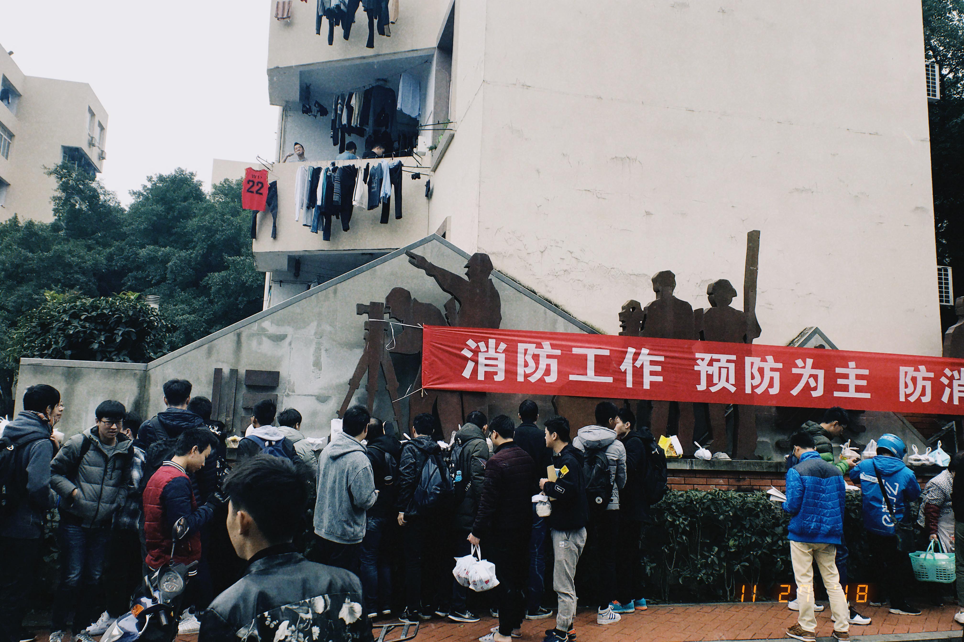 第一次拍组图,前后下来差不多半个月的时间。偶尔路过吃饭的时候就看看,然后拍几张。最开始觉得门口那个外卖墙特别有意思,还脑洞大开过设计个分号取外卖APP啥的。外卖既然没法送到宿舍里面,就只好在门口停下来。一来二去就堆积了不少外卖,固定的地方一旦开始堆积固定的东西之后,有趣的事情就开始能看到了。