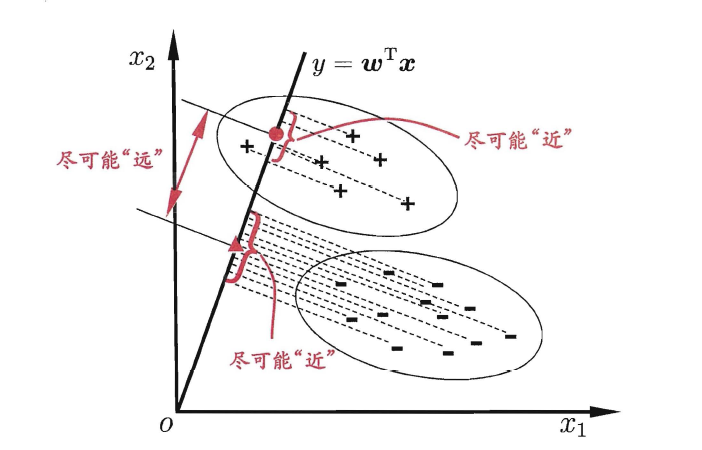 线性判别分析(Linear Discriminant Analysis,简称LDA),其基本思想是:将训练样本投影到一条直线上,使得同类的样例尽可能近,不同类的样例尽可能远。