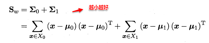 其中,表示均值向量,协方差矩阵。因此得到了LDA的最大化目标: