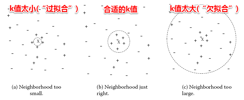 k近邻算法简称kNN(k-Nearest Neighbor)是一种经典的监督学习方法。其工作机制十分简单粗暴:给定某个测试样本,kNN基于某种距离度量在训练集中找出与其距离最近的k个带有真实标记的训练样本,然后给基于这k个邻居的真实标记来进行预测,类似于前面集成学习中所讲到的基学习器结合策略:分类任务采用投票法,回归任务则采用平均法。