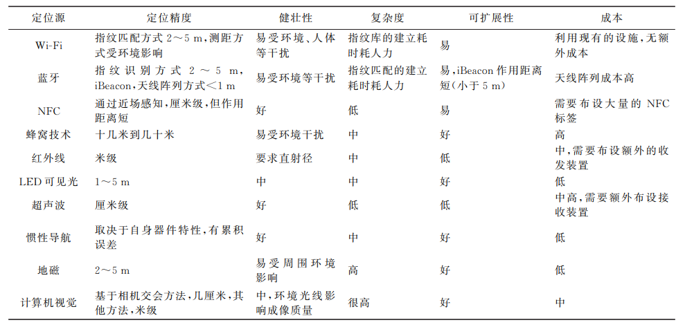文献[1]总结了室内定位技术的发展趋势,包括三个方面:探索新的定位源;异构定位源的高效融合;语义约束和认知的协同定位。